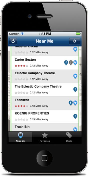 Geopalooza! is an iPhone app that helps you find the best deals and offers. It gives you 1 click Check-in option, once you check-in, you can share this with your friends on Facebook or Twitter. Geopalooza! helps you to both save your money and your time. Geopalooza! aggregates all the deals and offers available on Foursquare, Facebook and Google in one convenient app. You can “check-in” to all of these services with a simple push of a button. Geopalooza! also shows you all of the deals from Yelp! and Groupon and a number of other discount and deal services. Stop worrying about multiple apps and start saving time and money with a single app – Geopalooza!