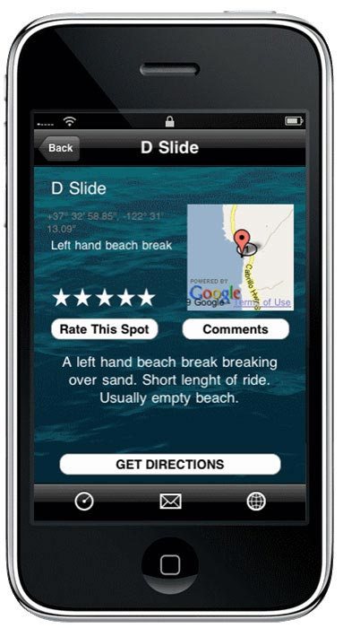 The ultimate directory for surf spots. iSurf is an application created to help surfers find surf spots and surf shops. With iSurf you can find a surf shop or break that is near you with GPS functionality of up to 50 miles. iSurf gives you turn by turn directions from where you are to the break or shop. You also have the ability to manually search cities for spots. Each break includes a 5 star rating system and comment board so you can help rate and comment on each location. iSurf features a streaming RSS news feed from major surf media. Geo-coding, GPS navigation, integrated Google Maps, commercial advertisement, Forum integrated together with the rating system, Photo gallery with ImagePicker, Lazy loading for lists of locations are included. Users get email notifications when the database of surf spots is updated with new info and locations. Includes the list of over 5,000 locations all across the US, Australia and new countries added each day. With iSurf you can also contribute breaks that you know and help add to the community of people who want to find the best beaches, reefs and hidden spots.