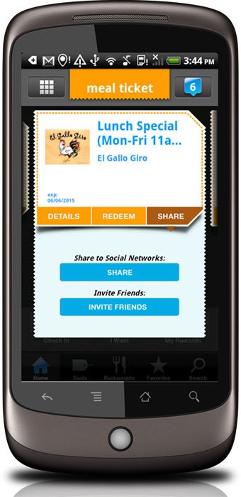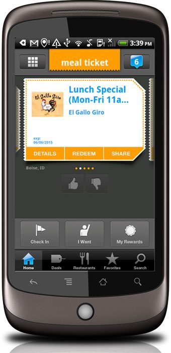 Meal Ticket – Great deals, just for you! So you’re hungry for a good meal — and a great deal, or looking for special offers? You can find both here. Meal Ticket will show you coupons and deals at restaurants near you, with reviews and ratings from other users. Pick your deal, map the location, order your meal, and flash the coupon right from your Android handset or tablet — nothing to print, no coupons to clip. You’ll get instant savings on the spot. You can even pass the savings on to your friends via Facebook, Twitter, Foursquare and email, and receive alerts when your favorite restaurants post a new deal, specials, or events.