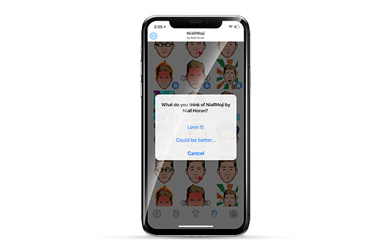 The NiallMoji app includes a set of personalized stickers and animated avatars of Niall’s face, designed by Niall Horan himself. The receiver does not need to install the app to view NiallMoji and GIFs received.