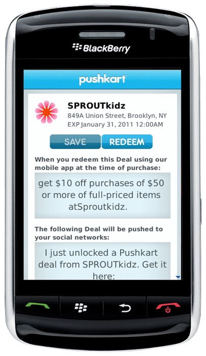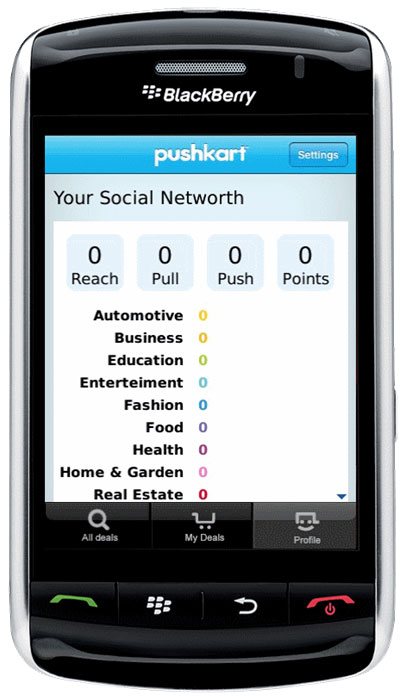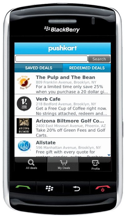 Pushkart Blackberry App is a mobile version of a social shopping solution http://www.pushkart.com/. We have ported Pushkart iPhone app to BlackBerry. The app allows to find the best deals, save and redeem the selected deals. We used Zxing library for continuous scanning of QR codes at the point of purchase of the deal. Pushkart is a client-server application, ABCloudz team connected to API of the existing web part when porting the app and used Blackberry SDK technology to fully implement the Pushkart business logics. The deals location can be viewed on GoogleMaps that we integrated into Pushkart App. Current location button has integrated GPS functionality . The app gives you an opportunity to maximally benefit from the social media channels: Facebook and Twitter, that were added with the help of Facebook and Twitter APIs. This application was developed by ABCloudz for BlackBerry and Android platforms.