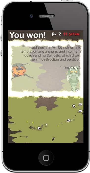 Satan Begone is an exciting, interactive Bible study game that teaches Bible verses for general and religious education. You have 66.6 seconds to unscramble a Bible verse and stop “Satan” from tempting you and sliming your screen. Win and you get to blow up “Satan”. Lose and you will have to clean your screen to play again. You can also save verses to study. You can share them with friends through Facebook or Twitter. Push the Glorify icon for verses for daily devotions and prayers. Satan Begone is a fun app to learn Bible that your kids would love.