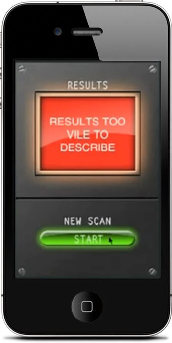 Have you ever wondered about the stains that are invisible to the naked eye? Is there something suspicious on that chair in the theater? What’s that spot on the sofa in the dorm? Should you shake hands with the person you just met? The time has arrived to find out and the Splatter Black Light Scanner will answer your questions and more! -THIS IS A NOVELTY APP- Inspired by the black-light scanning technology seen on today’s most popular TV shows and used by law enforcement agencies to scan and identify crime scene evidence, Splatter Black Light Scanner offers ‘answers’ to identify what’s on any surface you want to scan. It’s easy to use Splatter. If you’re on the go, simply tap “Scan All Surfaces.” If you want to scan a particular kind of surface (there are several to choose from), select it on the dial and scan away. In seconds, your iPhone turns a black-light-like purple, then there’s an authentic scanning noise, and in just a few seconds, your ‘results’ are presented. You can read the hilarious results on the iPhone screen and hear them as a friendly voice with a non-judgmental, female British accent.