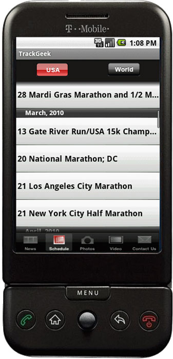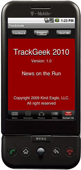 Track Geek 2010 is the top choice for those who live in and are obsessed with the World of Running. With Track Geek 2010 you get access to all the latest news from a wide range of sources which appear under the News section (added via RSS feed). You can also easily follow all the major national sports events with the help of the schedule feature. The Pictures section with the slide show enables you to store pictures of your favorite sport stars. The Video section gives you an opportunity to save the videos from sport events and play your favorite moments over and over again. (Pictures and Videos can be downloaded from the Track Geek website). Our team has developed a number of other awesome features.